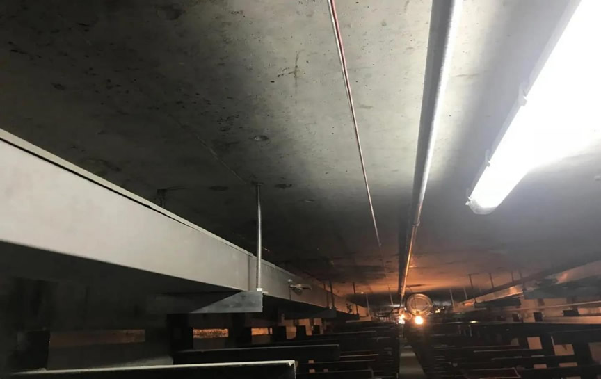 二、是采用管廊顶部吊装钢丝绳,感温光纤用扎带或包塑绑丝固定在钢丝绳上,感温光纤距离舱顶100MM-200MM。