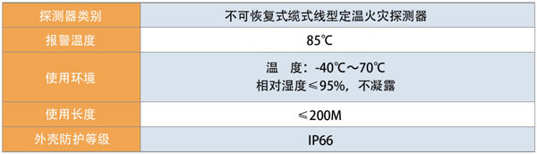 不可恢复式缆式线型定温火灾探测器(以下简称探测器)是我司开发的具有自主知识产权的智能线型感温火灾探测器,
